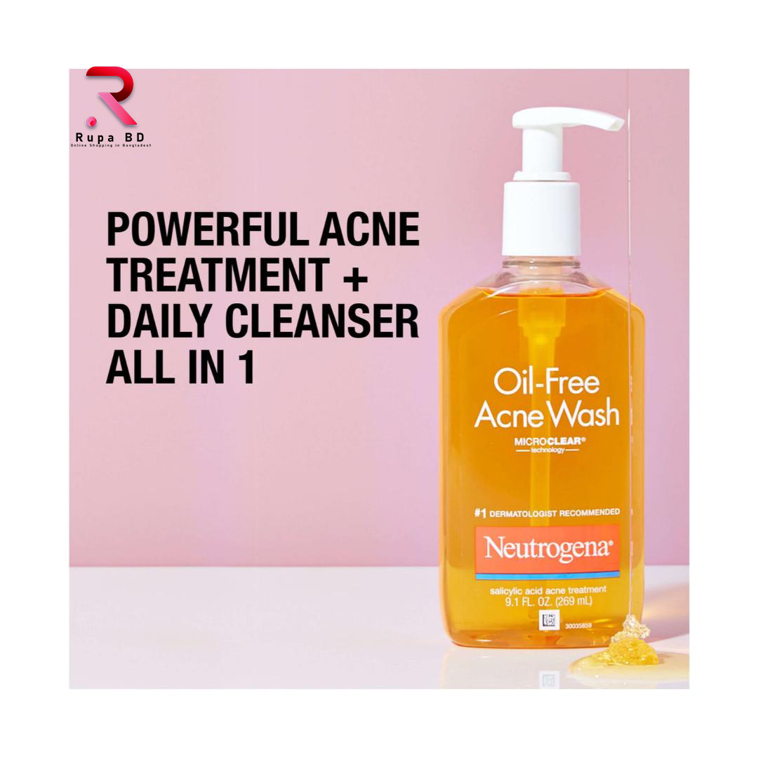 Neutrogena Oil-Free Acne Face Wash ব্রণ-প্রবণ ও ত্বকের অতিরিক্ত তেল কমাতে কার্যকর। এতে থাকা স্যালিসিলিক অ্যাসিড ব্রণ, ব্ল্যাকহেডস ও পোর্সের ভেতরে জমে থাকা ময়লা পরিষ্কার করে। এটি ত্বককে গভীরভাবে পরিষ্কার করে কিন্তু ত্বককে রূক্ষ করে না। প্রতিদিন ব্যবহারের জন্য উপযোগী এবং ডার্মাটোলজিস্ট-রেকমেন্ডেড। সুবিধা: অয়েল-ফ্রি, গভীর পরিষ্কার, ব্রণ কমাতে সহায়ক। অসুবিধা: অতিরিক্ত সংবেদনশীল ত্বকে মাঝে মাঝে শুষ্কতা অনুভূত হতে পারে।