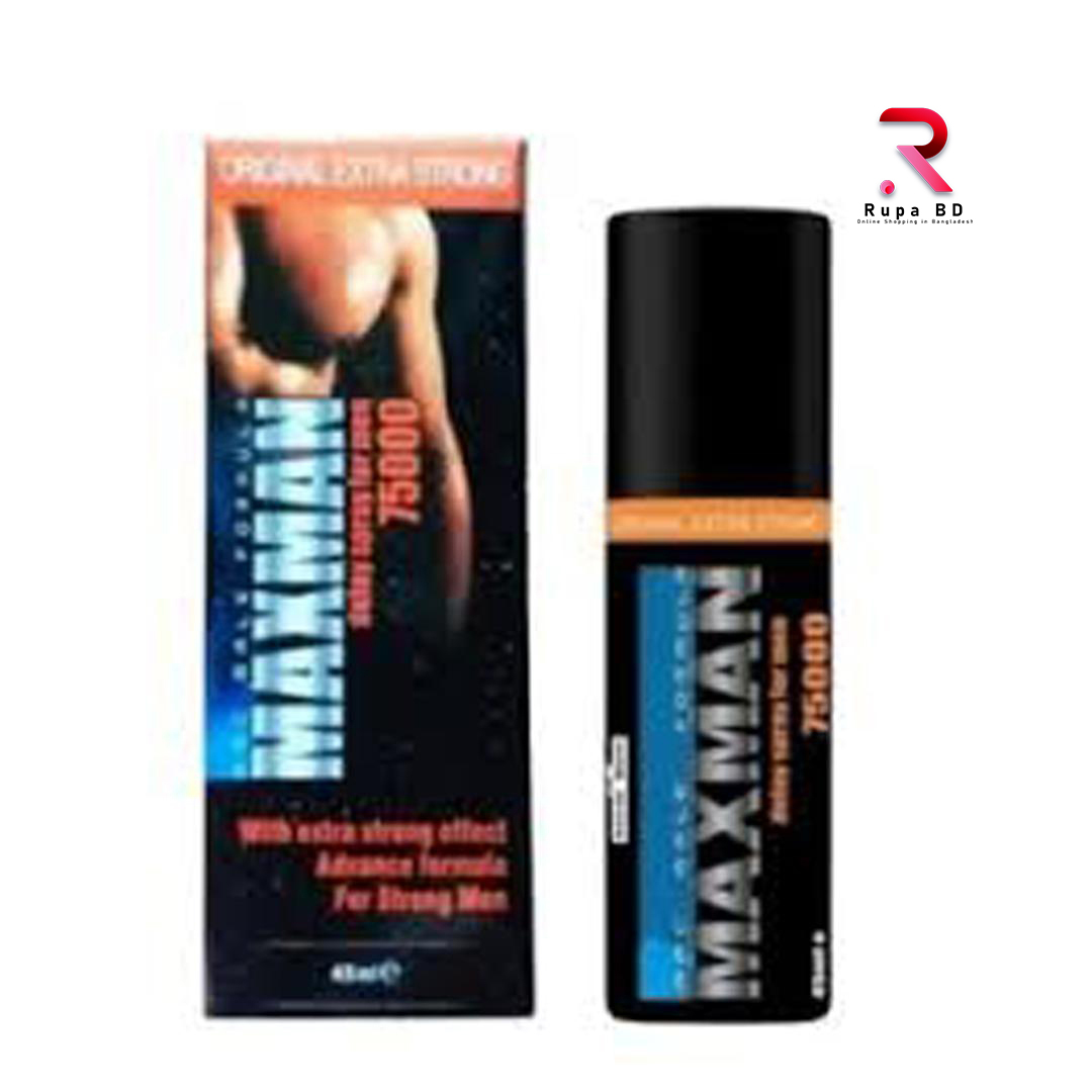 ম্যাক্সম্যান ৭৫০০০ স্প্রে আপনার যৌনজীবনে আত্মবিশ্বাস ফিরিয়ে আনতে পারে। প্রাকৃতিকভাবে যৌন সম্পর্কের সময়কাল বাড়াতে এবং পার্টনারকে সম্পূর্ণ তৃপ্তি দিতে এটি একটি চমৎকার পণ্য।